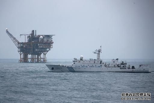 油气平台附近的中国海监船。