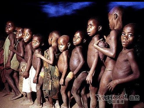 在中部非洲的赤道密林中世世代代生活着一群身材矮小的居民,他们自称是“森林之子”,奉这片原始森林为其生身父母和至高之神,他们就是俾格米人。成年俾格米人一般身高1.2米到1.3米,最高不超过1.4米,体重不超过50公斤。