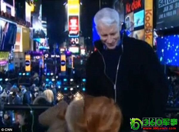据台媒报道,昨日美国CNN电视台进行跨年之夜特别节目,让当家男主播古柏(AndersonCooper)和喜剧女演员葛林芬(KathyGriffin)担任主持人,2人联手在纽约时代广场进行跨年晚会的连线转播,但在节目中间时,葛林芬突然往下蹲,亲了古柏的下体,让古柏相当尴尬,不少观众被吓到,直言“尺度太大”。