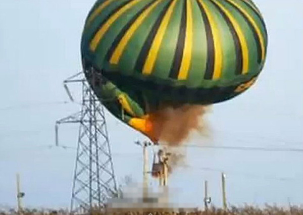 图为热气球坠毁前发生爆炸。