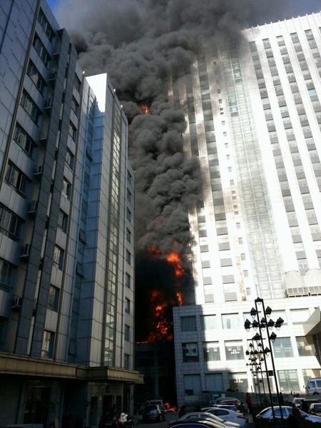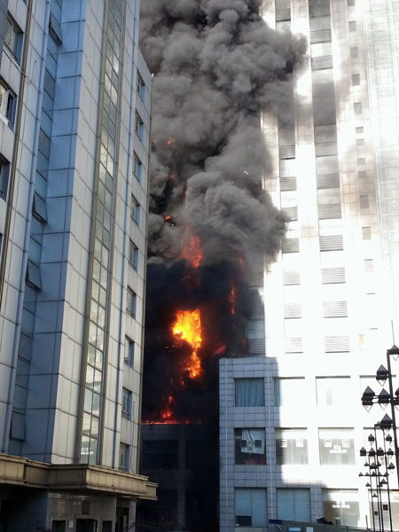 天津南开区一高层建筑突发大火(1)(3)