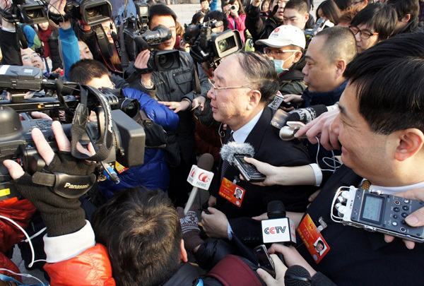 3月4日,北京,重庆市市长黄奇帆被记者围堵。