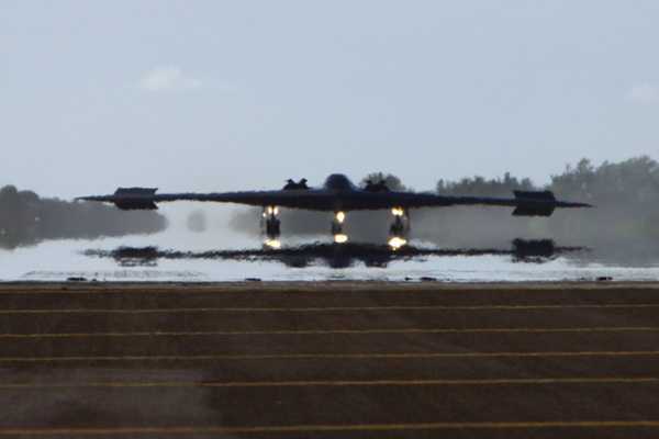 2013年2月2日,美国空军驻怀特曼空军基地的第509轰炸机联队所属的两架B-2A隐形战略轰炸机,从本土飞越大平洋抵达关岛安德森空军基地,参加实战训练任务。B-2A作战航程远,部署在关岛时,其作战半径可覆盖中国全境。