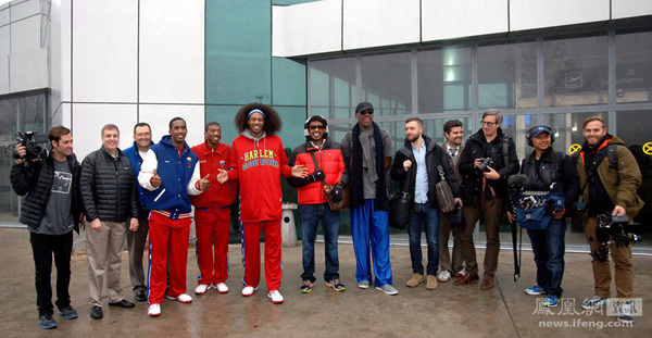朝鲜劳动党机关报《劳动新闻》27日在第四版刊登了美国前NBA球员一行抵达朝鲜的新闻,并附上了罗德曼等人抵达平壤后在机场拍摄的合影。