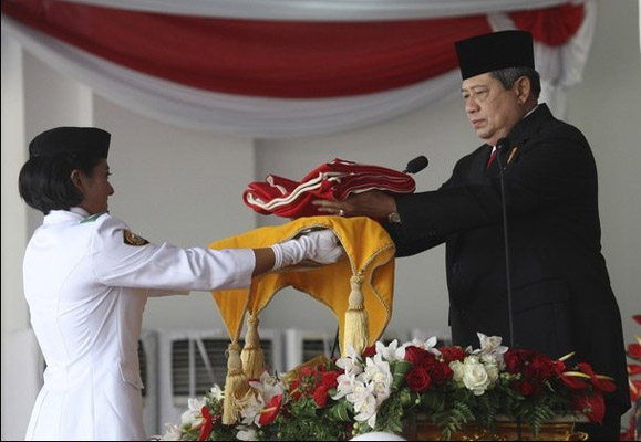 印尼太炎热 女兵阅兵时体力不支(1)(3)
