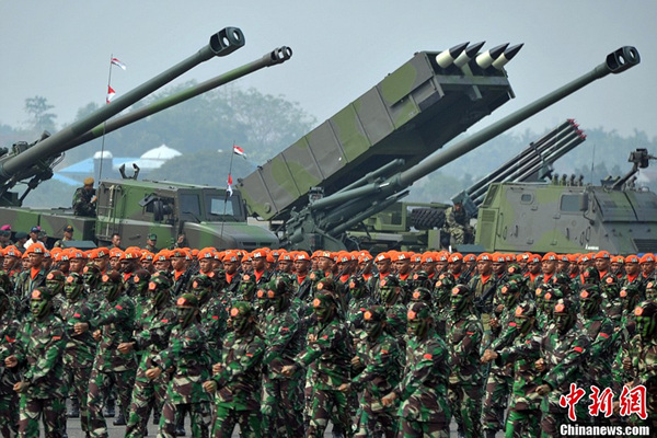 高清:印尼阅兵式女兵方阵神采奕奕(1)(3)