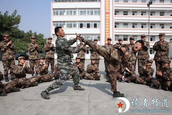 驻港部队里的"黑带"女兵展示杀人绝技(1)(3)