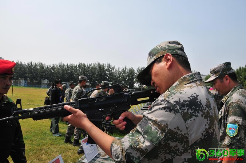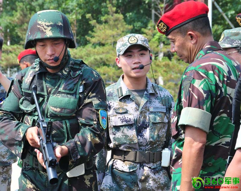 中方向印尼陆军特种部队司令威斯努少将(右一)讲解国产装备性能特点。